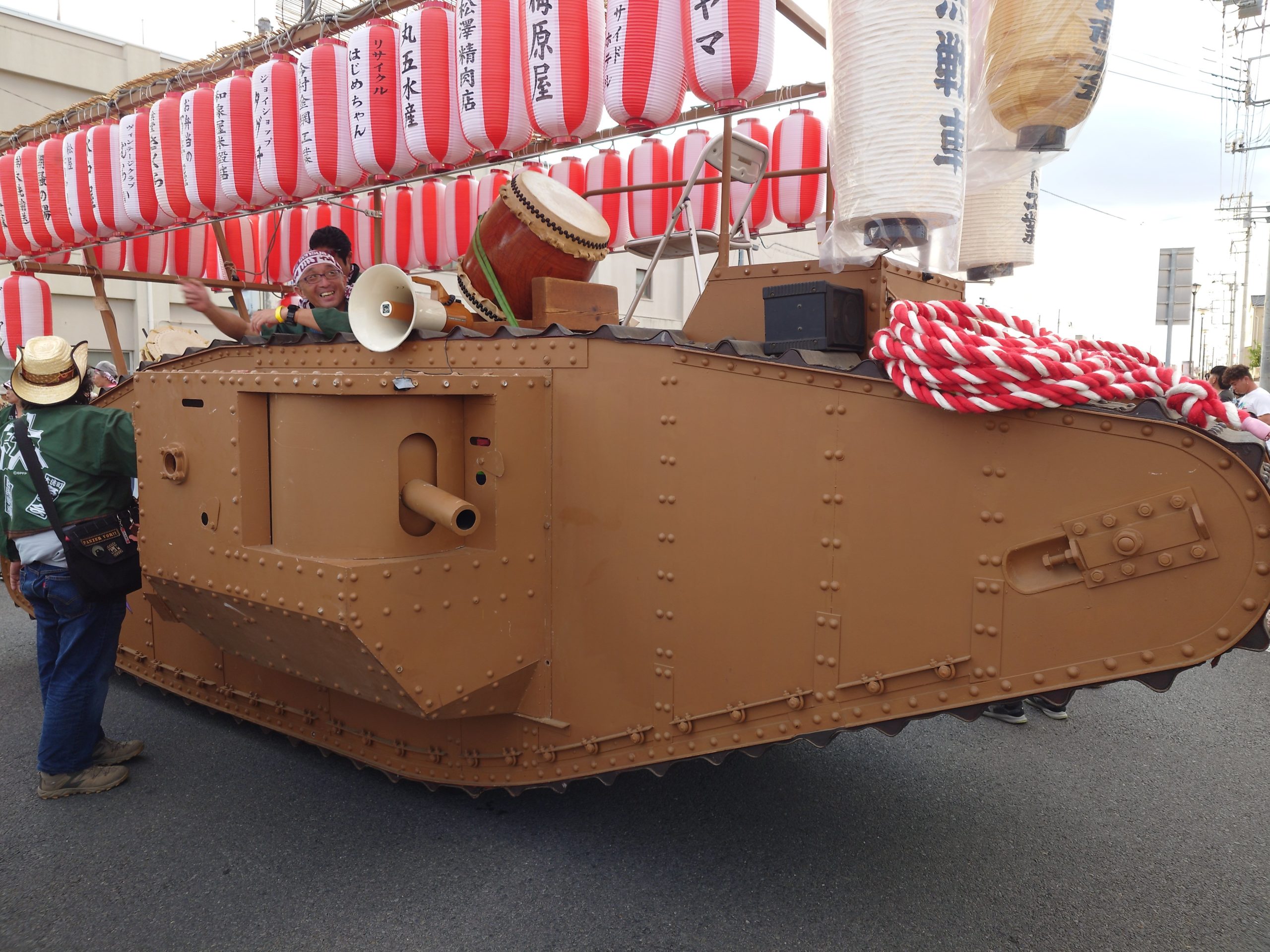 Mark4戦車を引っ張ることは、申し込みの都合でできませんでした…。少し残念です。来年行く機会があったら、キチンと申し込みして法被をまとって参加したいと思います。法被は山戸呉服店さんで購入可能です!(アンチョビのお店)在庫があれば、当日でも購入可能でした。(2024年参加時点)